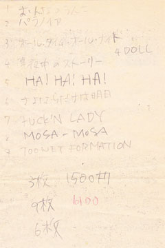 (ライブハウス初出演なんだけど、何をやったか記録がない・・多分TALGEVOと一緒)